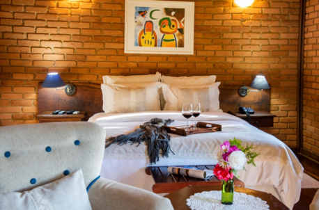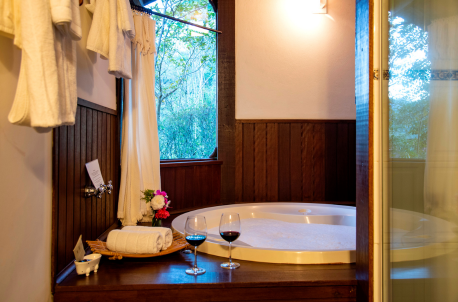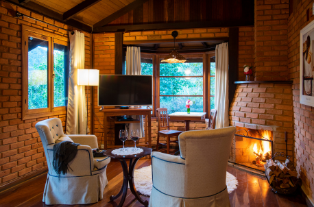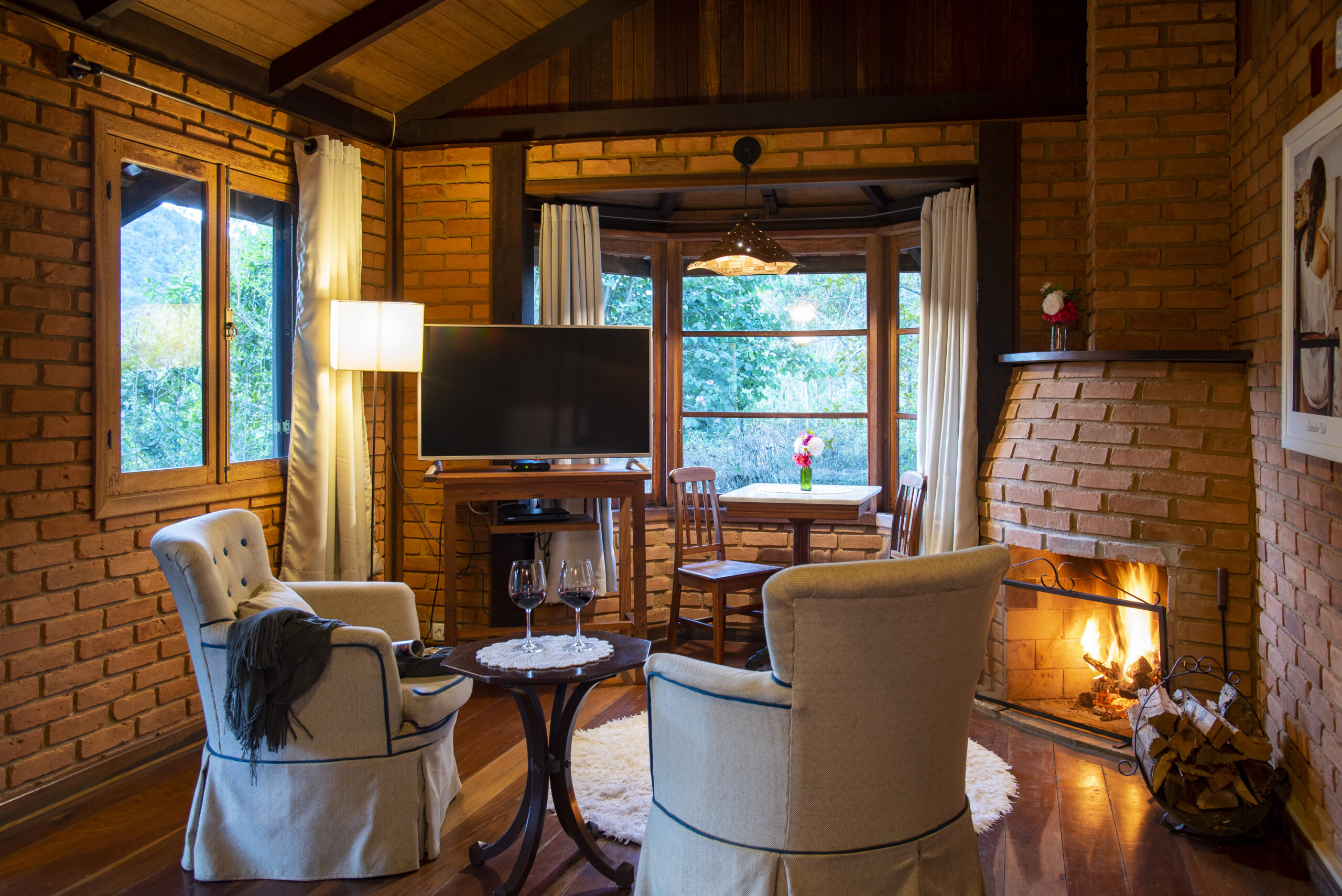 O Chalé Pitangueira está localizado junto a vários arbústeos do mesmo nome. Uma varanda (com rede) e duas janelas, na frente, proporcionam uma ampla visão das montanhas. Uma ‘bay-window’ na lateral permite acompanhar o nascer do sol ou da lua.