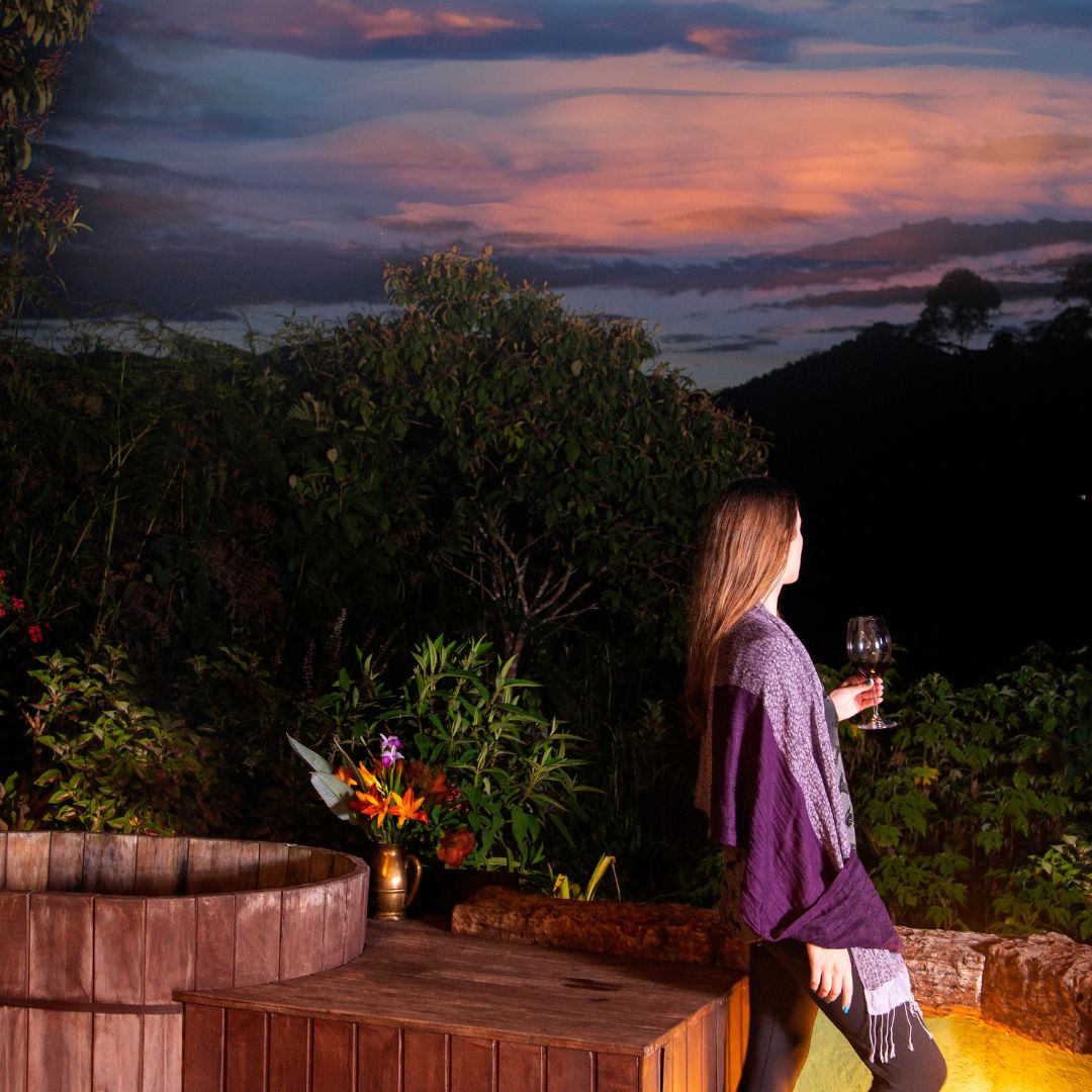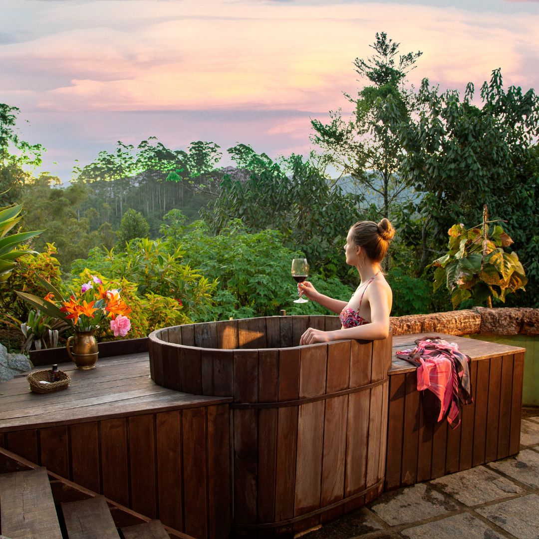 • Ofurô privativo na área externa com vista para as montanhas.