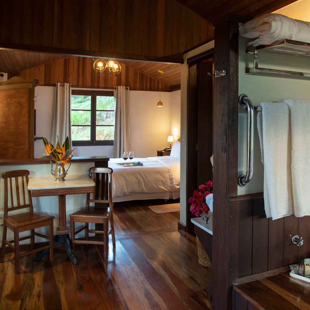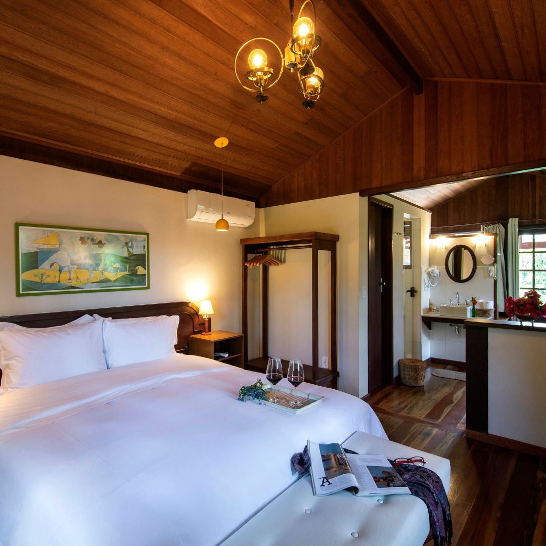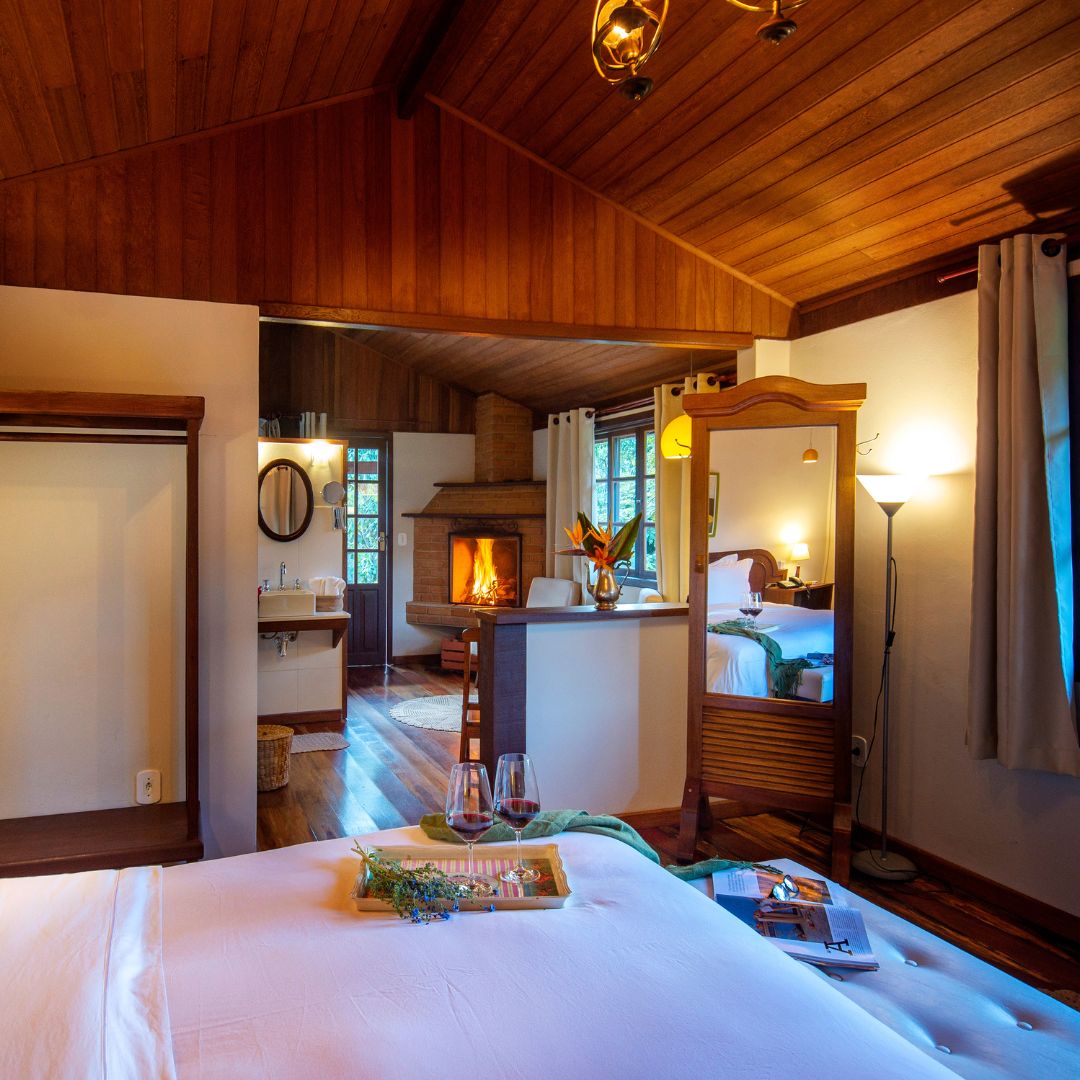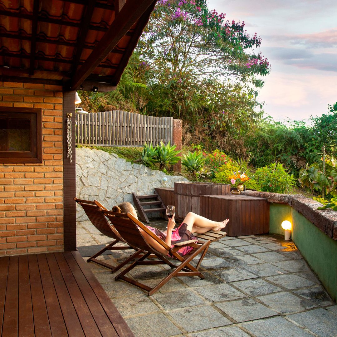 O Chalé Superior Mantiqueira é um dos mais alto e reservado da Pousada: um lugar para quem deseja privacidade, silêncio e paz. Totalmente voltado para o Oeste, tem a sauna privativa e hidromassagem com uma bay window orientada para a mesma direção – se você ama observar o céu em cada um de seus estados, esse chalé é perfeito para você. Jardins, varanda charmosa com rede e ainda na área externa, um banho de imersão em ofurô para sob a abóboda estrelada de Visconde de Mauá.